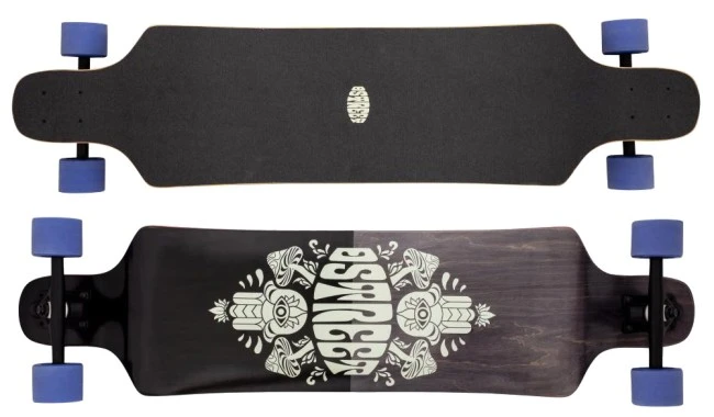 The 40″ Drop Down Tripout complete keeps a low centre of gravity making it super stable at speed, but also agile enough to have some real fun around tight bends. Road Rider trucks and premium Canadian Maple makes this board a great Drop Down for any style of riding.