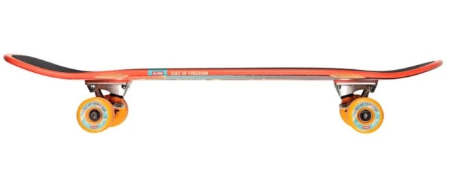 The Globe Aperture 31″ in revers to the pool decks from the 80’s. It is a cruiser with a subtle diamond tail with measurements of 9.9″ x 31″ x 14.75″ (wheel base). It is made of Resin-7 hard rock maple and has a mellow concave with kick tail. The Aperturre is mounted with 6.5″ Tensor Alloy trucks and 60mm 80a wheels. The Amperture has a bottleopener in the top