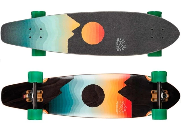 De Globe Arcadia 36″ is een longboard voor het cruisen van korte tot middellange afstanden. Het heeft een lange wielbasis en een klassieke cruiservorm zonder kicktail en grote wielen. Het deck heeft een subtiele W-concave met rocker profiel en Globe Slant 180 mm aluminium reverse kingpin trucks. Het board wordt geleverd met 74 mm 78a wielen voor een soepel rijgedrag en stabiliteit.