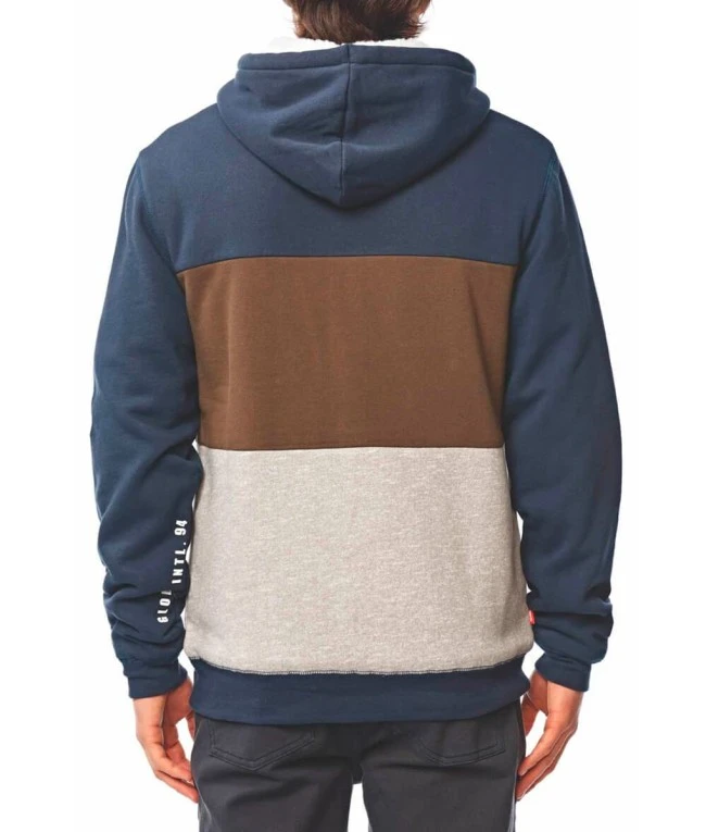 The Convert Hoodie in ARGON BLUE is made of 80% cotton and 20% polyester.It features 300gsm brushed fleece, mixed fabrications, 2×1 rib hems, sherpa body and hood lining.
