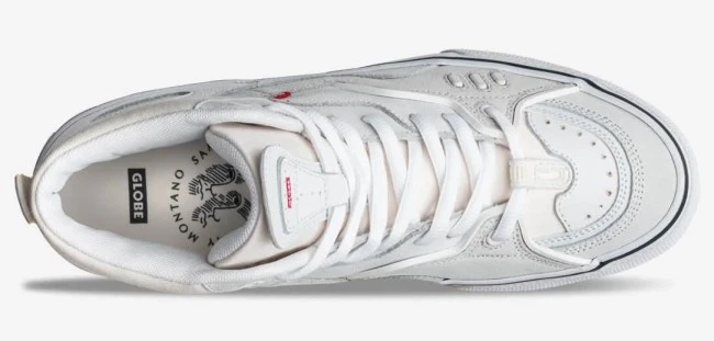 Esthetisch geïnspireerd op het DNA van onze erfgoedklassiekers uit het verleden, met een moderne focus op skate functie en duurzaamheid. Deze gelaagde, gevulkaniseerde hoge topschoen skate is puur ontworpen voor skateboarden. Gebouwd om lang mee te gaan met multi- gelaagde, rubberen olliebescherming – de Dimension in White/Montano is voorzien van Globe’s Shockbed™ binnenzool voor schokbeheersing en Super-V™ buitenzool voor verbeterde grip en boardgevoel. Het bovenwerk is gemaakt van volnerfleer, suède en organisch katoen voor duurzame duurzaamheid op en naast het board.
