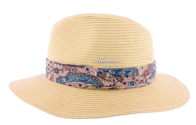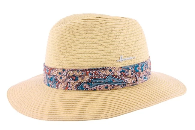 Fedora strohoed met brede band decoratie