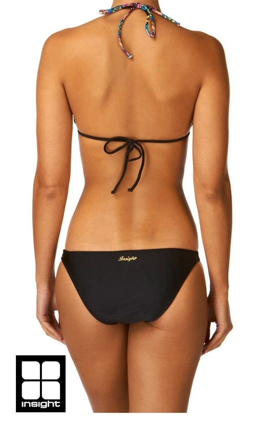 Mix and match halter bikini set. The Insight The Huxe Sliding Halter Bikini Set includes an Aztec inspired lightly padded triangle halter top. The simple black bikini briefs feature a contrast embroidered logo at rear.