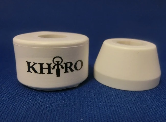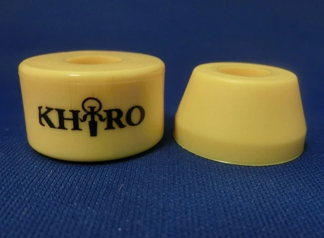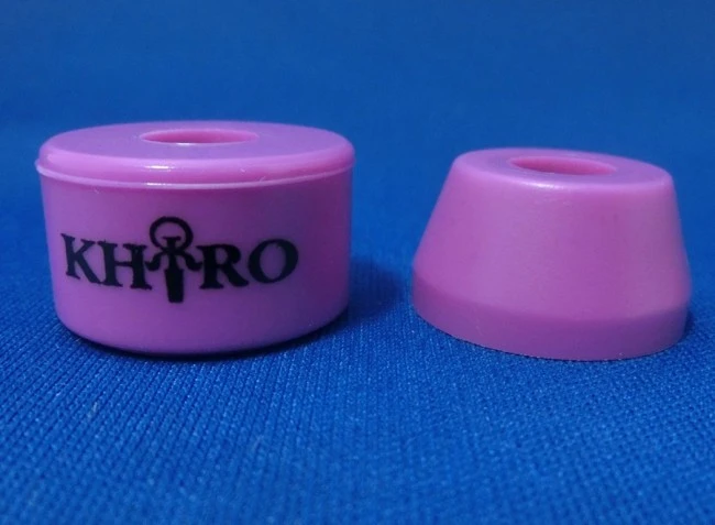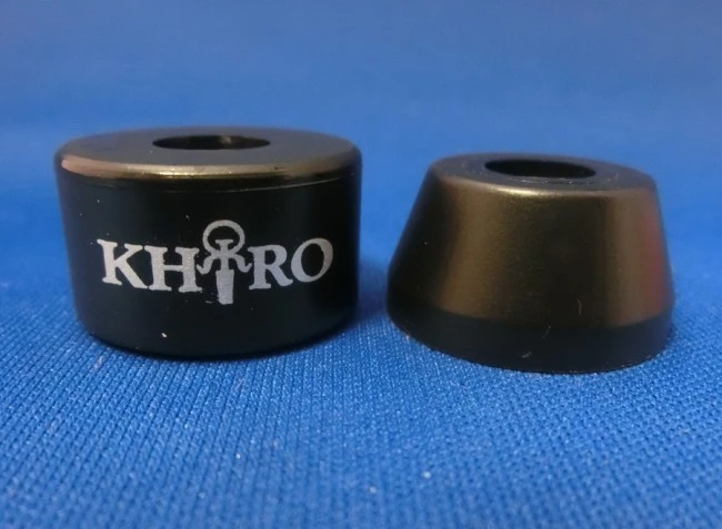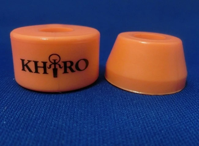 The Khiro “Small Cone Combo” Bushings are a unique combination of bushings that combine Khiro’s Classic “Bottom Barrel” Bushing with one of Khiro’s new “Small Cone” Top “Low Rise” Bushing- This combination offers riders “EXTREME POP” for Street combined with the capability to execute RADICAL maneuverability on any Terrain! Like all KHIRO bushings, these “Small Cone Combo” Bushings come in Khiro’s Classic seven different durometers; Extra Soft White 73A, Mild Soft Orange 79A, Soft Blue 85A, Med Soft Red 90A, Hard Black 95A and Extra Hard Purple 98A.