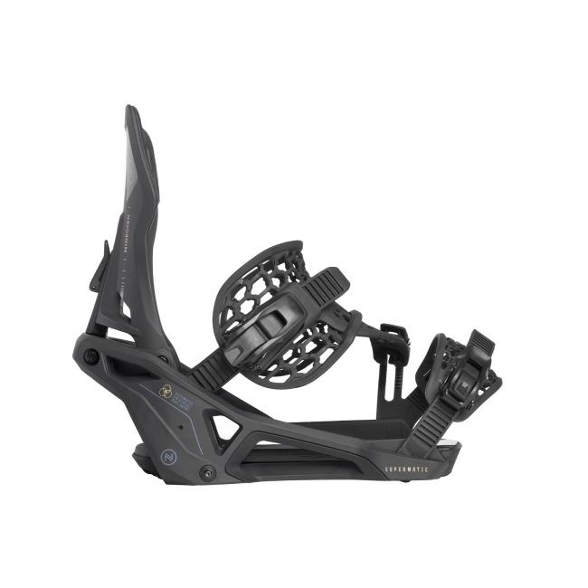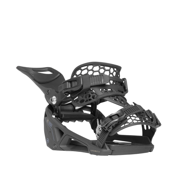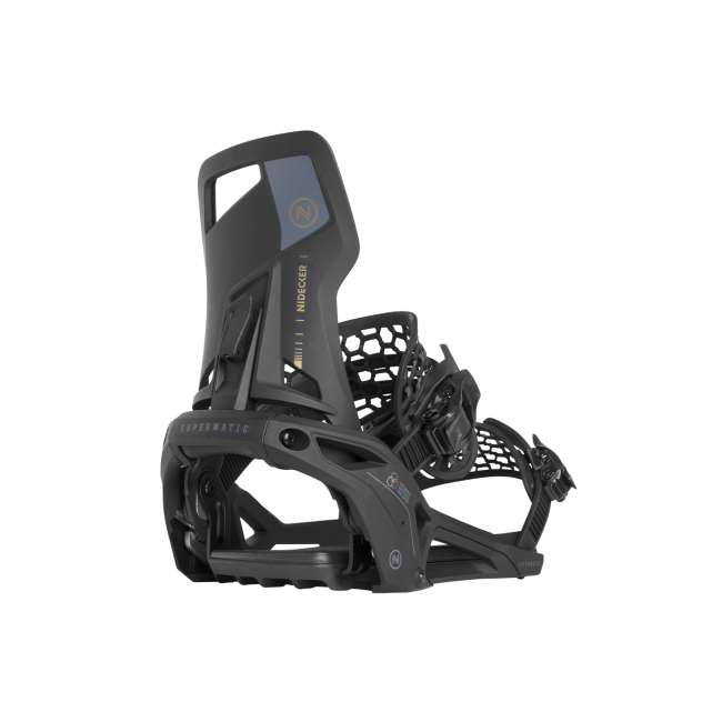Nideckers antwoord op de nieuwe step-in hype. Een vernuftige samenvoeging van de techniek een skibinding en de uitgekristalliseerde werking van het Flow systeem. Je hoeft geen nieuwe boots te kopen en je kan nog steeds je straps strak aantrekken voor een hoge snelheidsrun of wat losser voor wat rail en naast de piste werk. De Nidecker Supermatic heeft dit alles in zich met een zeer snel i- en uitstapsysteem. De binding is stijf, responsief en rockered. Voor veel plezier op de piste. Uitgerust met een ontgrendelingshendel op de grondplaat, hoeft u alleen maar een hendeltje naar achteren te doen om uit te stappen.