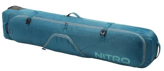 While the rest of your crew is huffing and puffing with their gargantuan board bags hung on their shoulders, you can be effortlessly smooth sailing with the wheeled ease of the Nitro Tracker wheelie board bag. With a whopping 90 liters of storage capacity, this bag can hold boards up to 165cm in length and is fully padded with reinforced stress points. Stash your board, boots, bindings, and outerwear all conveniently in the Nitro Tracker wheelie board bag
