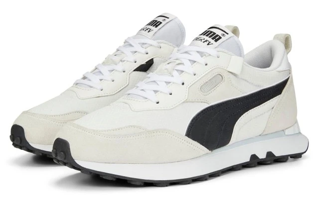 Eén voet in het verleden, één voet in de toekomst: de zestiger jaren stijl met Tommie Smith & John Carlos die tijdens de Olympische spelen een vuist opstaken op het podium. De Rider future sneakers combineren een retro bovenwerk met frisse nieuwe details. Zet je volgende stap in de ultieme old-school.
