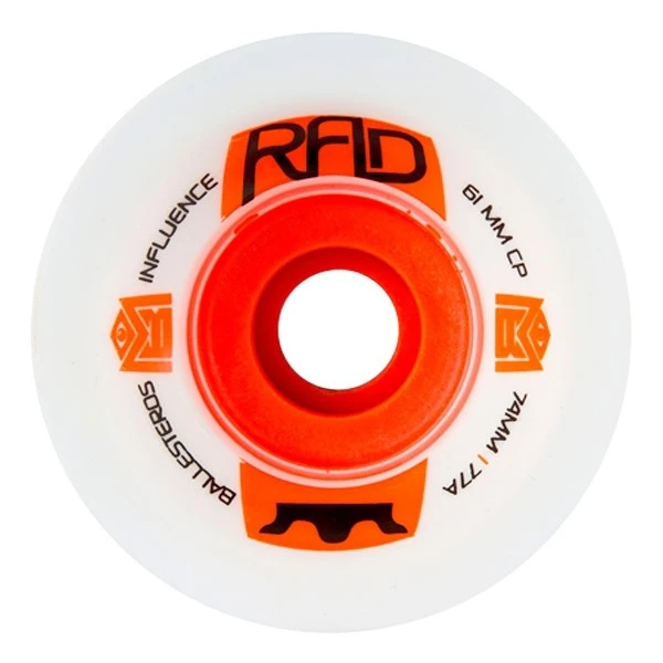 Coming in at 74mm tall, this wheel is quick on the acceleration, and the 77a formula and 61 mm contact patch ensures the RAD Influence is ready to grip it and rip it. This RAD crown core gives you the highest roll speed and smoothest slides. All in all, a wheel designed by the IDF world champion is assured to be fast, grippy, and slide extremely smooth.