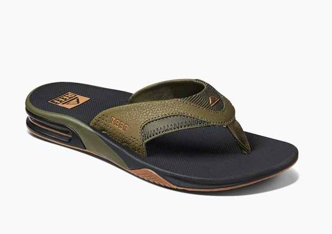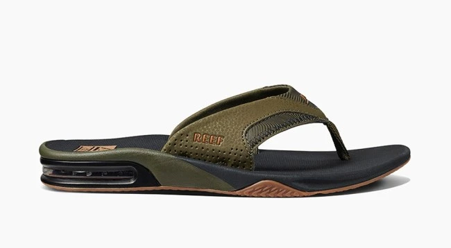 Dit is de sandaal van de legendarische drievoudige wereldkampioen en pro-surfer, Mick Fanning, de ultieme atletische slipper met een comfortabel, waterbestendig synthetisch nubuck-bovenwerk. Mick vertrouwt op het voorgevormde, gegoten EVA-voetbed met anatomische ondersteuning van de voetboog en een volledige 360 graden hiel-airbag omsloten door zacht poly voor een goede enkelsteun. Als “gimmick” is er een flesopener ingebouwd in de zool om je “frisdrank” te openen na een surfsessie of hangend in het zwembad. Reef Icon ‘visgraat’ rubberen buitenzool.