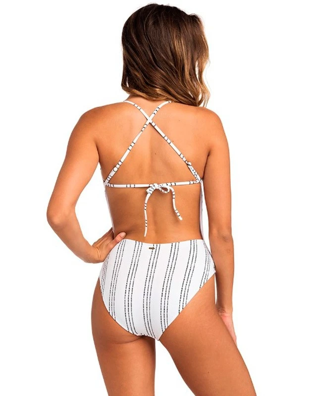 Stijlvol badpak uit één stuk in wit met print van hibiscus. Veters aan de achterkant