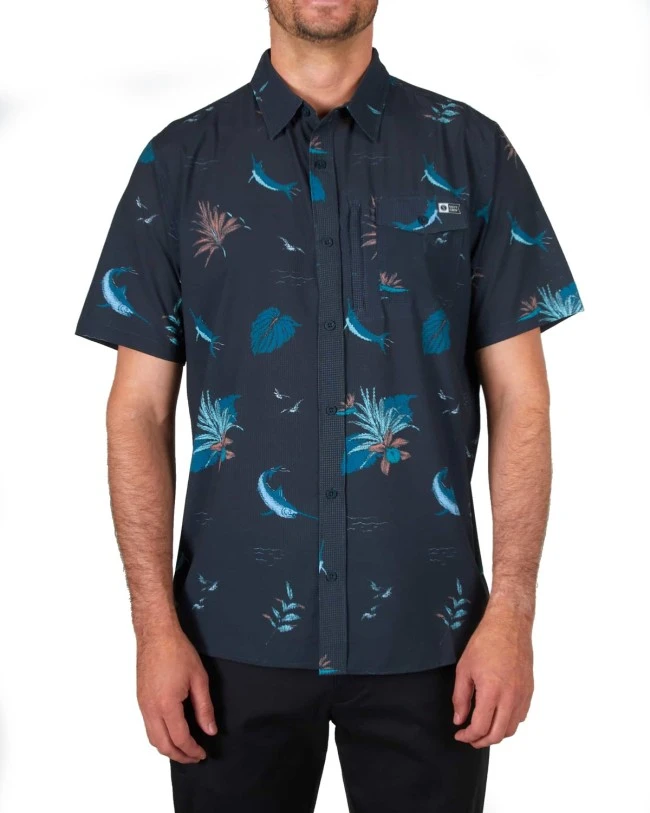 Salty Crew Ernesto Perforated Tech Short Sleeve Shirt Black