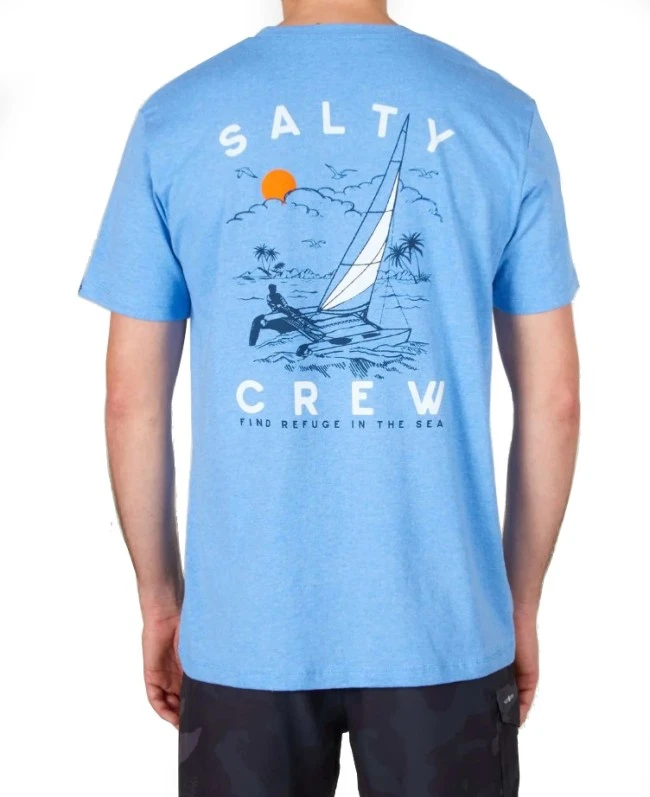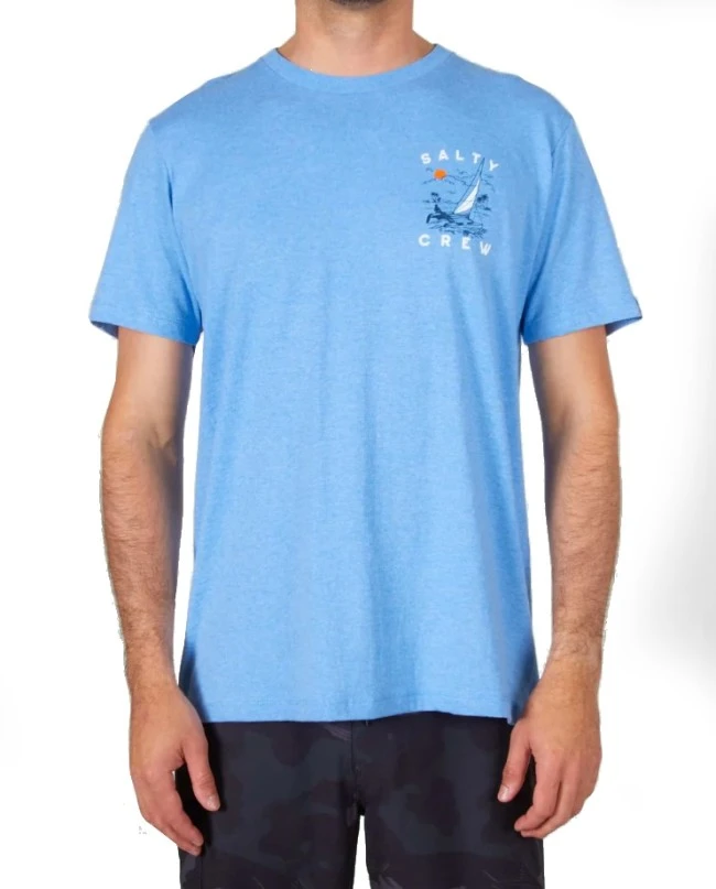 Dit T-shirt is perfect voor casual dagen en heeft een mooie lichtblauwe heather kleur. Het is gemaakt van zacht katoen dat comfortabel aanvoelt op de huid en heeft een standaard pasvorm die bij de meeste lichaamstypes past. Het ontwerp bevat zeefdrukken op zowel de voor- als achterkant, die de textuur en diepte van de print verbeteren. Het T-shirt is gemaakt met 22 singles, wat betekent dat het een fijne draad heeft en duurzaam is. Het Set Sail Standard S/S T-shirt is perfect voor elke gelegenheid en kan worden gecombineerd met jeans, shorts of chino’s voor een coole en casual look.