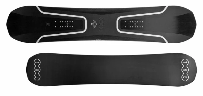 – Naar beneden kijkend: Directional. De nose- en tail-vormen zijn werkelijk identiek, en de stance is gecentreerd. Door de iets bredere en symmetrische shape is dit board supermakkelijk in beide richtingen te rijden, stabiel bij elke snelheid en leuk om overal op de berg te rijden.